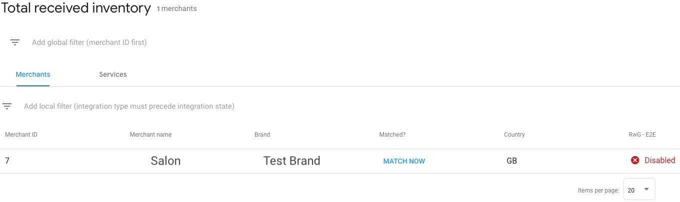 "Envanter" sayfasında, İşlemler Merkezi'ne gönderilen tüm envanteri eşleşme durumuyla birlikte görüntüleyebilirsiniz. Google Haritalar özelliğiyle eşleştirilen satıcılar, ilişkili özelliği görüntülemek için bir bağlantıyı tıklayabilir.