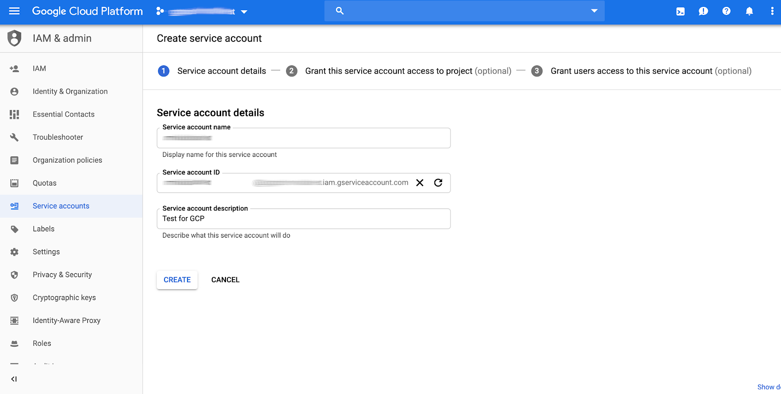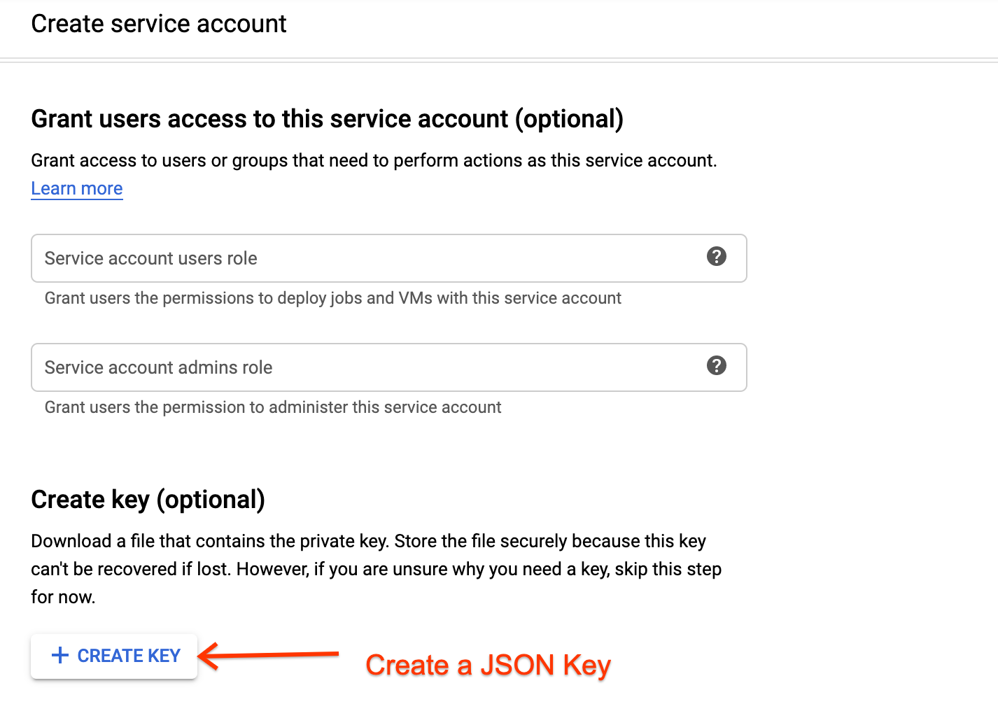 2. Vous utilisez la clé de compte de service créée dans la section Créer un compte de service et des identifiants OAuth.