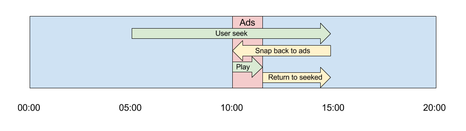 Örnek olarak aşağıdaki şemaya bakın. İzleyiciniz bir video izlerken 5. dakikadan 15. dakikaya atlamaya karar veriyor. Ancak, 10. dakikada bir reklam arası var ve bu reklam arasını izlemeden sonraki içeriği izleyemezler: