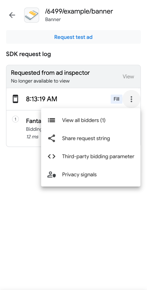 - מקישים על הבקשה הרצויה ביומן הבקשות מה-SDK.