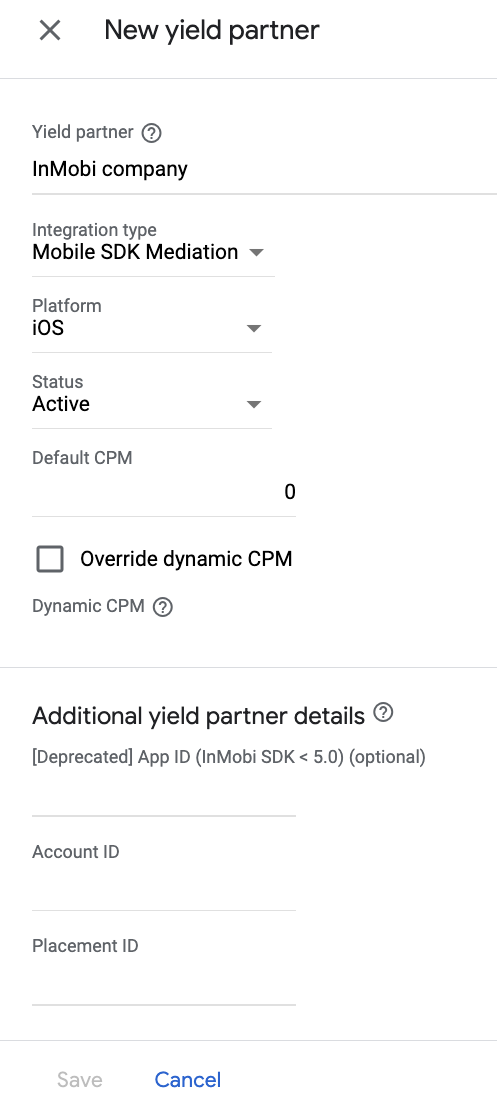 2. adım: Ad Manager kullanıcı arayüzünde InMobi talebini ayarlayın
