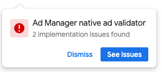 Native Validator автоматически оповещает вас о некоторых нарушениях правил в пользовательском интерфейсе с помощью всплывающего окна рядом с рекламой.