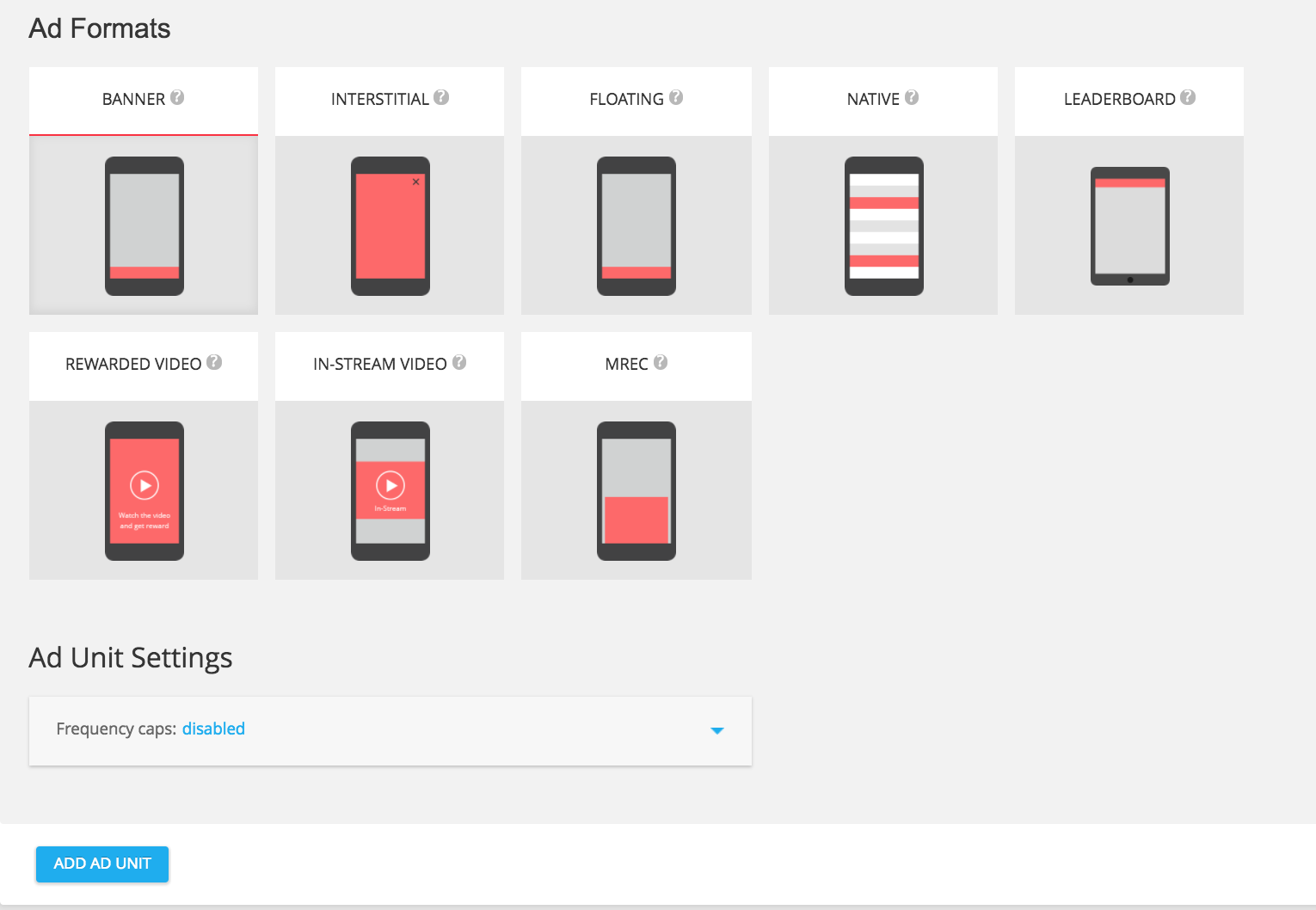 Seleziona INTERSTITIALE tra i formati dell'annuncio disponibili, quindi fai clic sul pulsante AGGIUNGI UNITÀ PUBBLICITARIA.