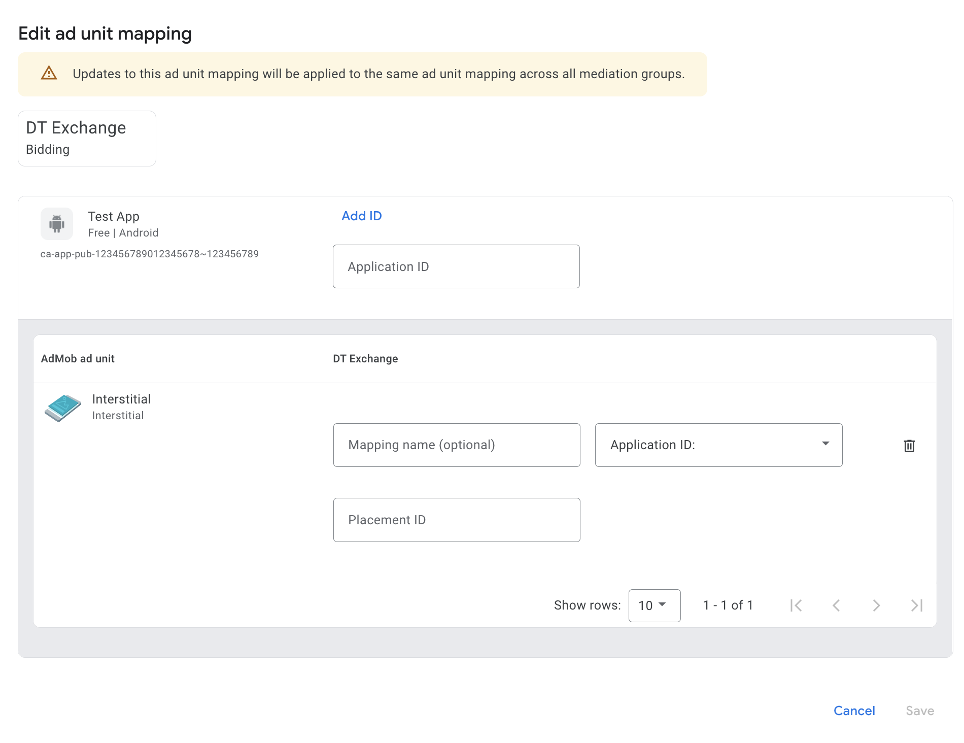 第 2 步:在 AdMob 界面中设置 DT Exchange 需求