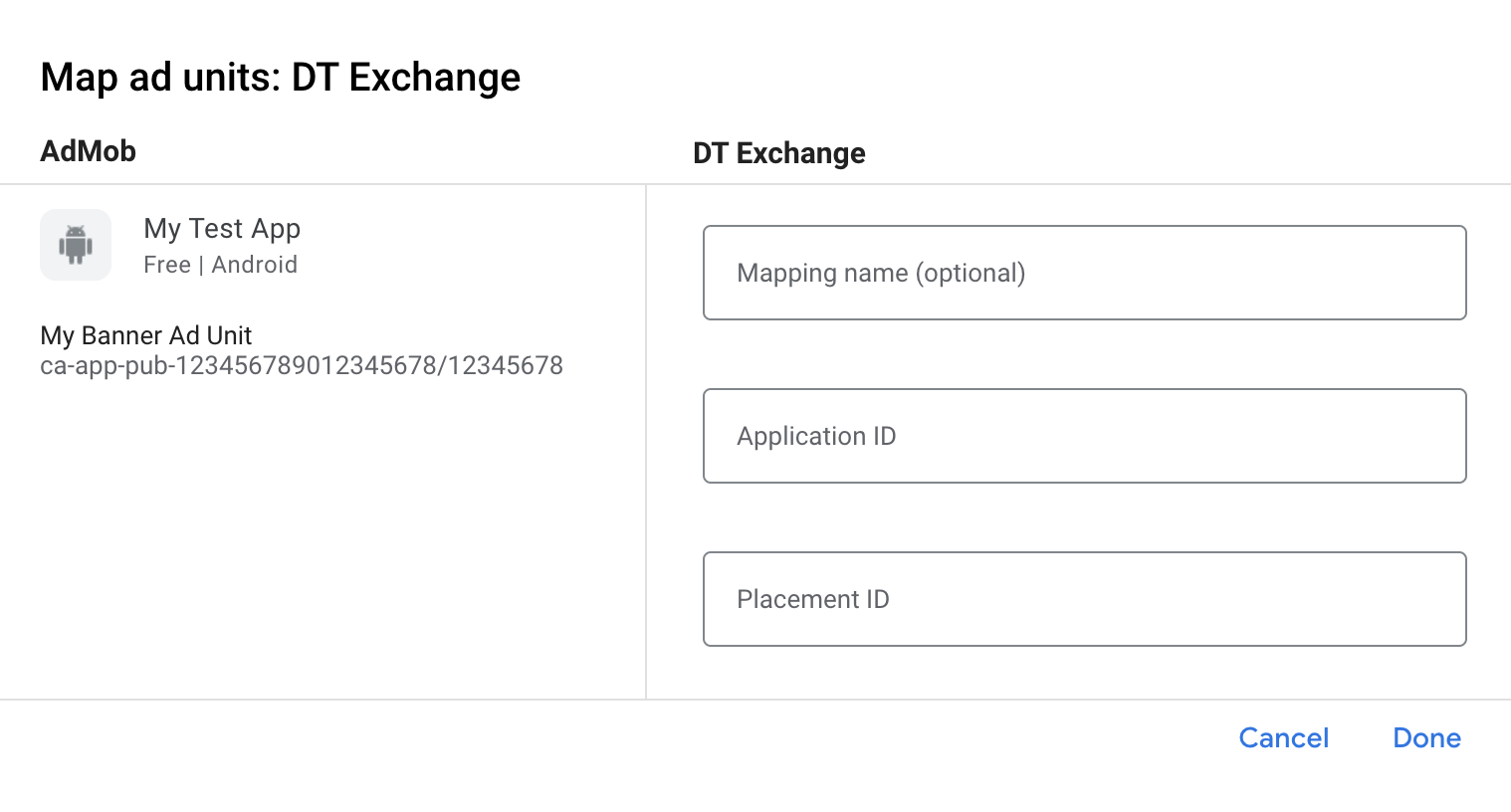 Paso 2: Configura la demanda de DT Exchange en la IU de AdMob