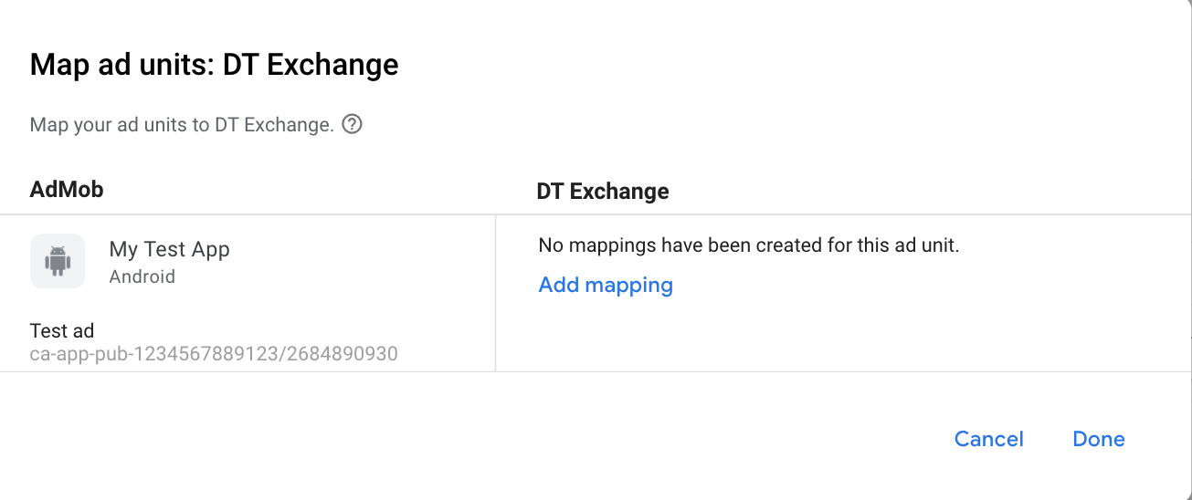 2단계: AdMob UI에서 DT Exchange 수요 설정하기