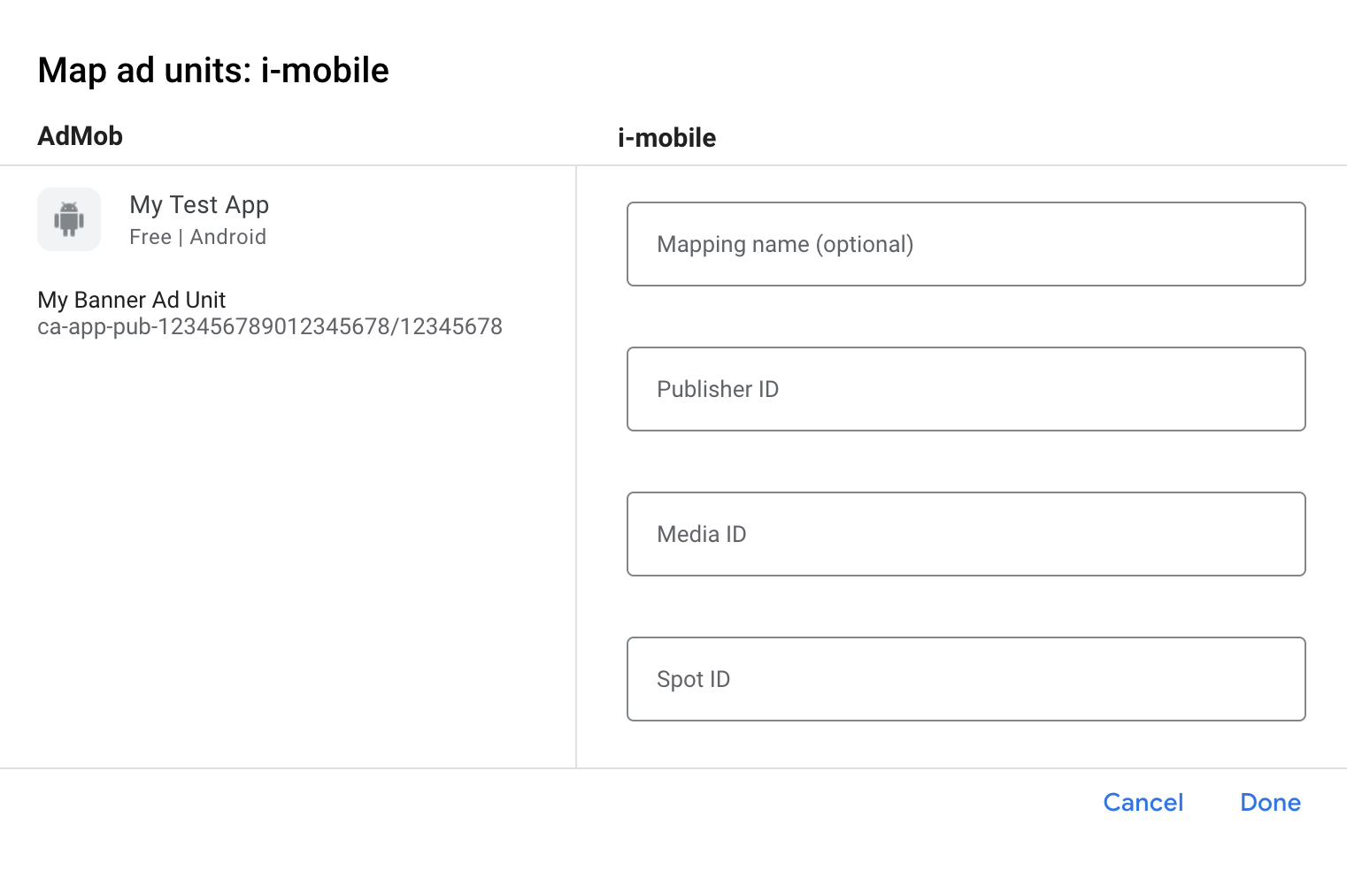이 가이드에서는 Google Mobile Ads SDK를 사용하여 AdMob 미디에이션을 통해 i-mobile의 광고를 로드하고 표시하는 방법을 보여주며, 폭포식 구조 통합에 대해 다룹니다. 광고 단위의 미디에이션 구성에 i-mobile을 추가하는 방법과 i-mobile SDK 및 어댑터를 Android 앱에 통합하는 방법을 설명합니다.