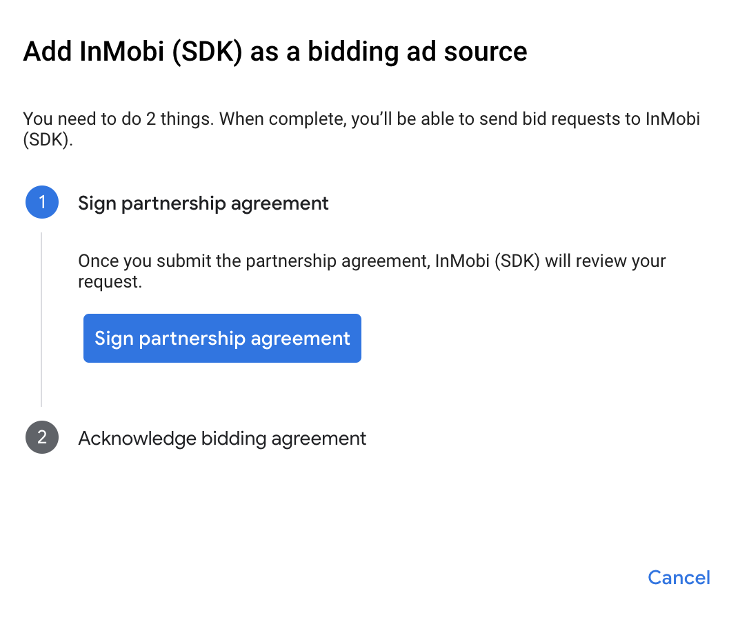 Cliquez sur Signer un contrat partenaire et configurer un partenariat Bidding avec InMobi.