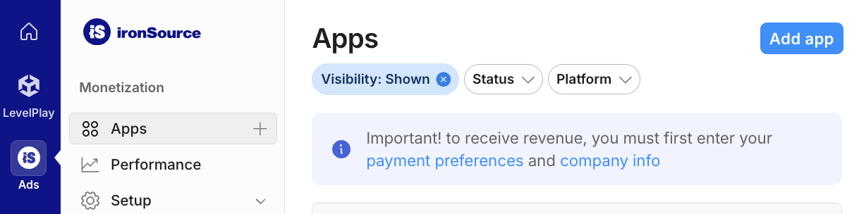 Étape 1 : Configurer les paramètres dans l'UI ironSource Ads