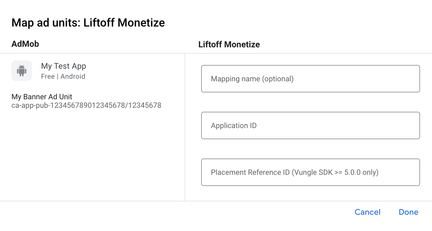 Paso 2: Configura la demanda de Liftoff Monetize en la IU de AdMob