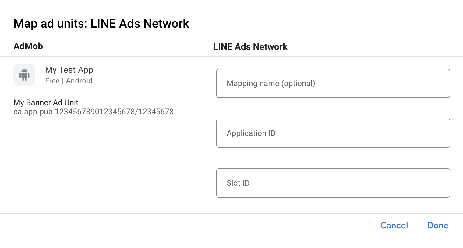 الخطوة 2: إعداد طلب LINE Ads Network في واجهة مستخدم AdMob