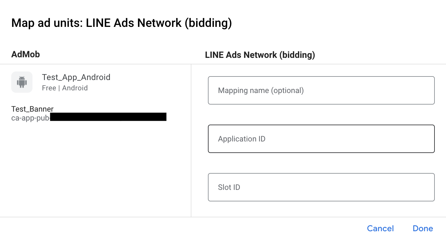 Paso 2: Configura la demanda de LINE Ads Network en la IU de AdMob