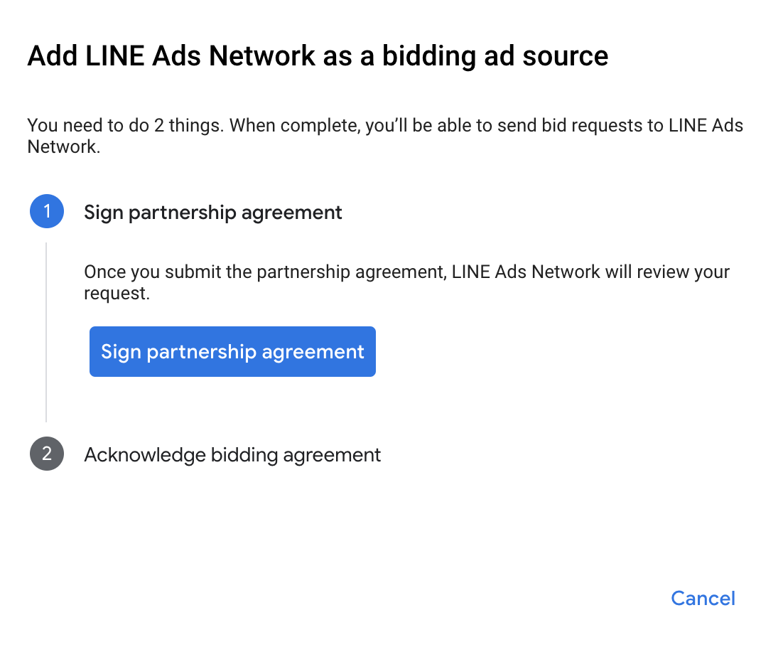 Cliquez sur Signer un contrat partenaire et configurez un partenariat d'enchères avec LINE Ads Network.