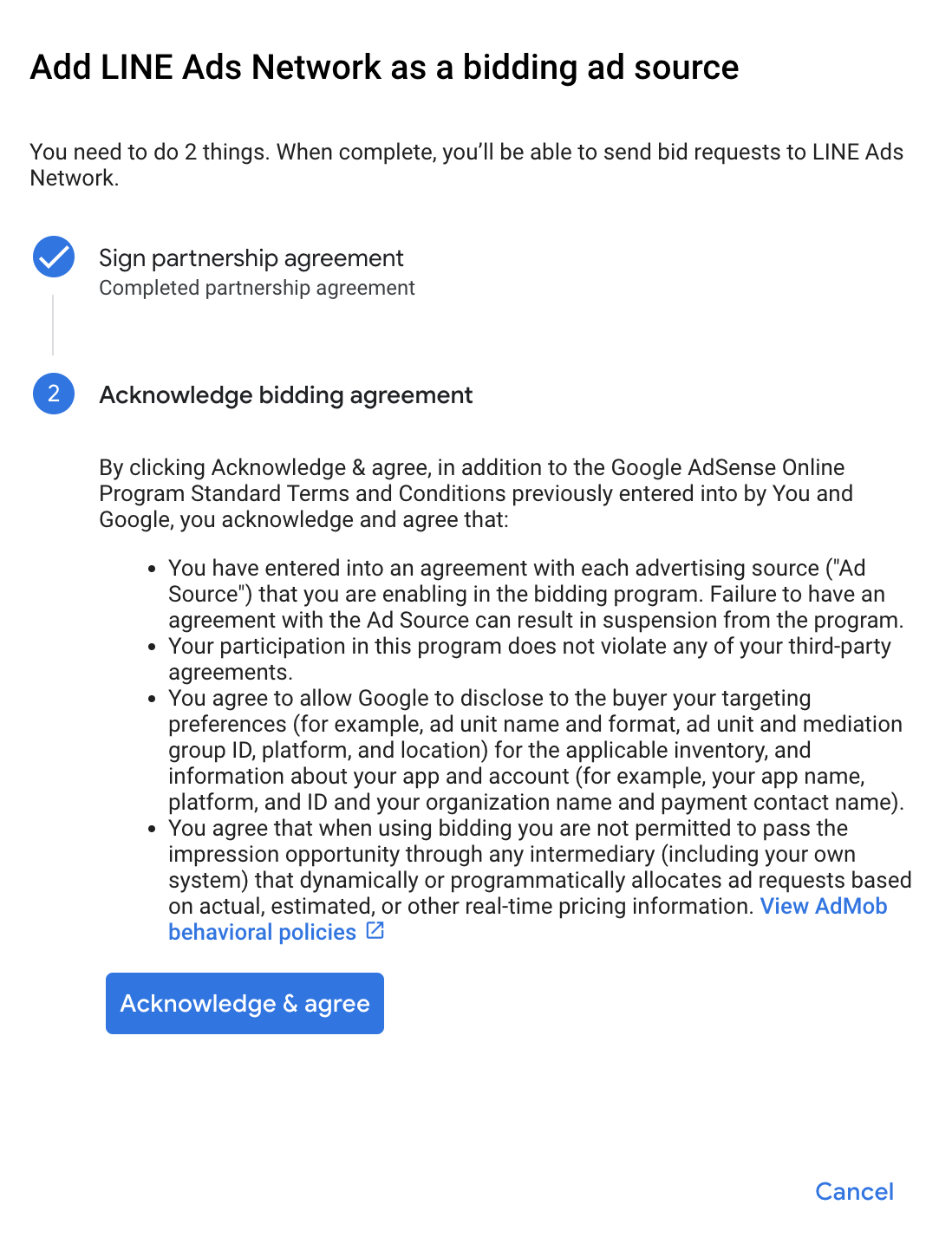 Klik Cara menandatangani perjanjian kemitraan dan siapkan kemitraan bidding dengan LINE Ads Network.