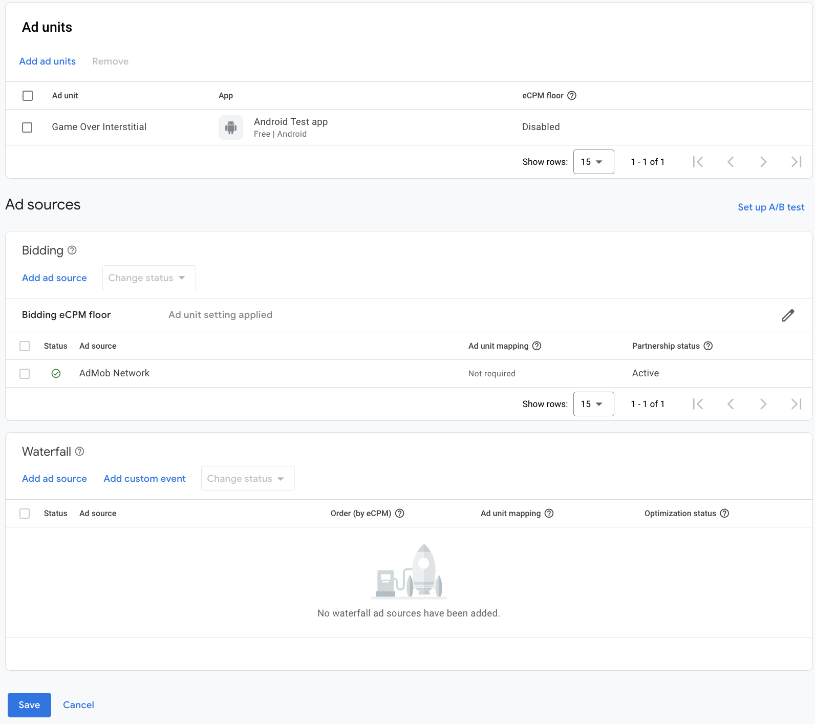 Свяжите эту группу медиации с одним или несколькими существующими рекламными блоками AdMob. Затем нажмите «Готово» .