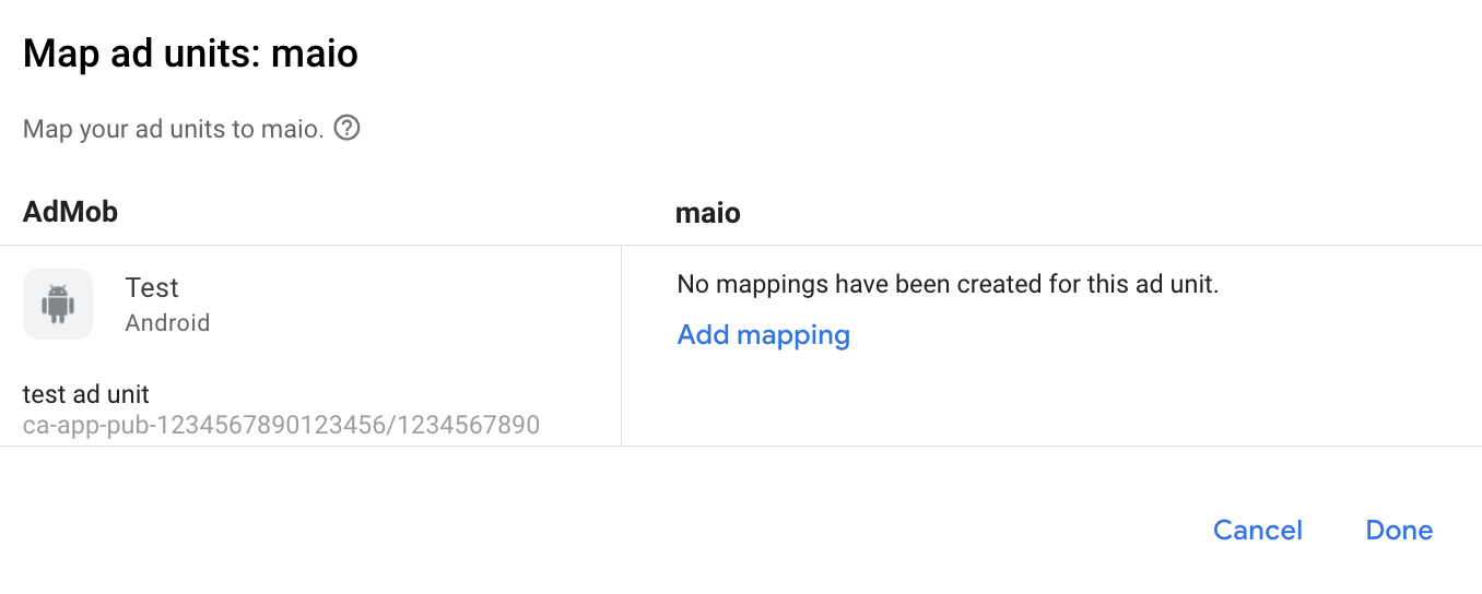 Anda perlu menambahkan maio ke konfigurasi mediasi untuk unit iklan Anda.