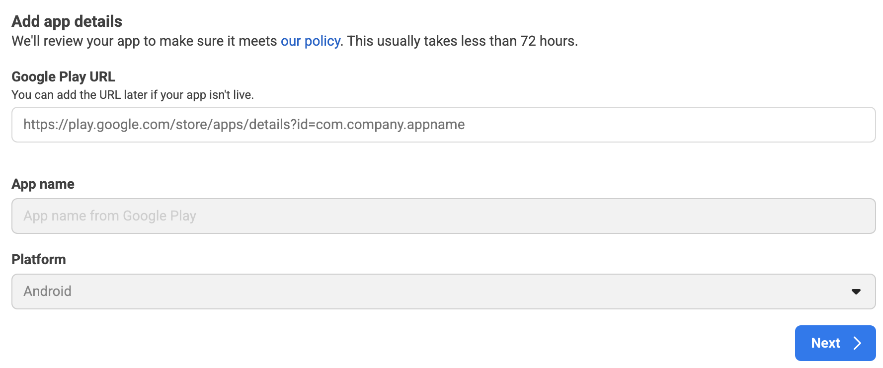כדי להטמיע app-ads.txt ב-Meta Audience Network, אפשר לעיין במאמר זיהוי מפיצים מורשים באמצעות קובץ app-ads.txt.