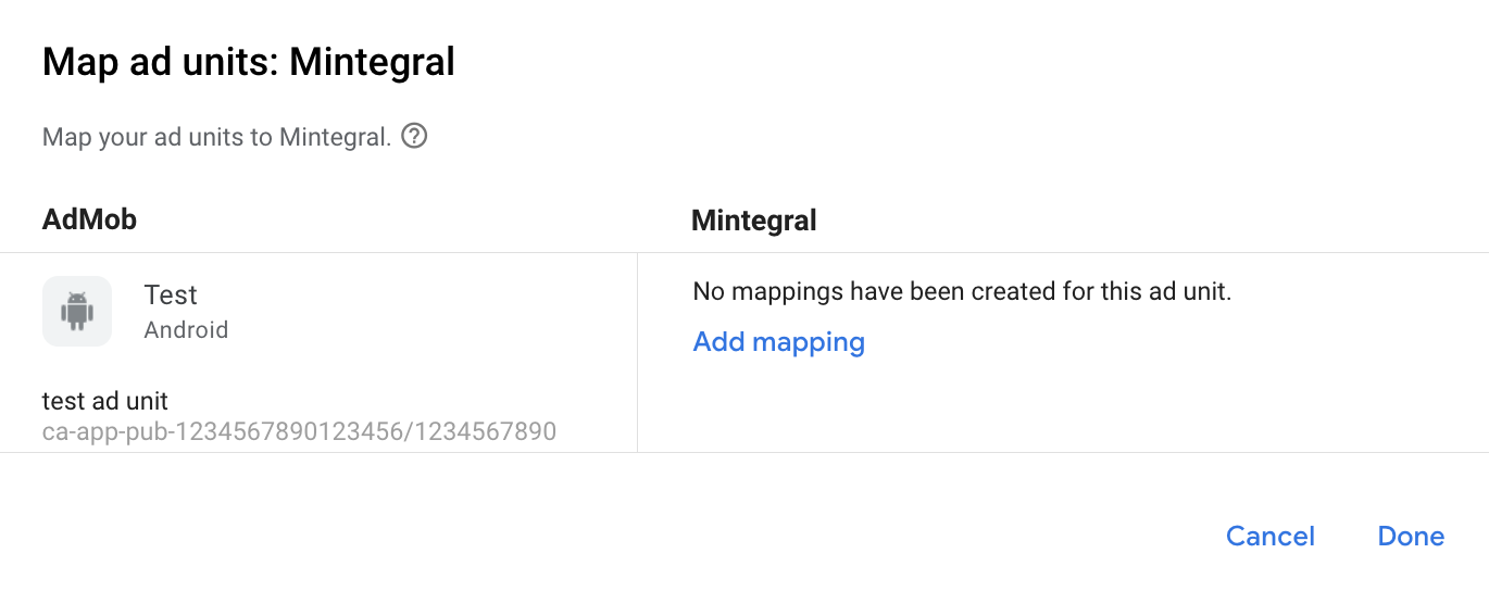 Si ya tienes una asignación para Mintegral, puedes seleccionarla. De lo contrario, haz clic en Agregar asignación.