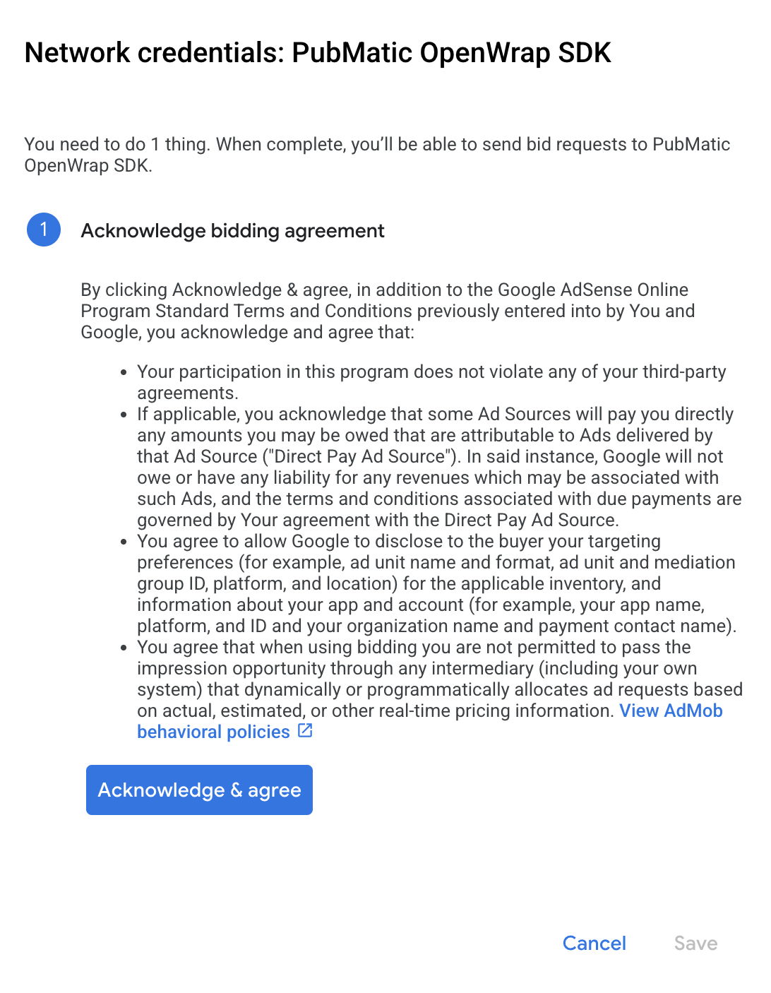 2. adım: AdMob kullanıcı arayüzünde PubMatic talebini ayarlayın