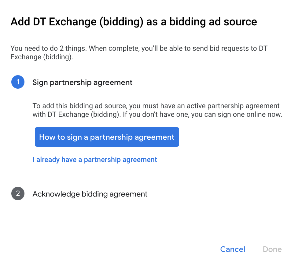 Clique em Como assinar um contrato de parceria e estabeleça uma parceria de lances com a DT Exchange.