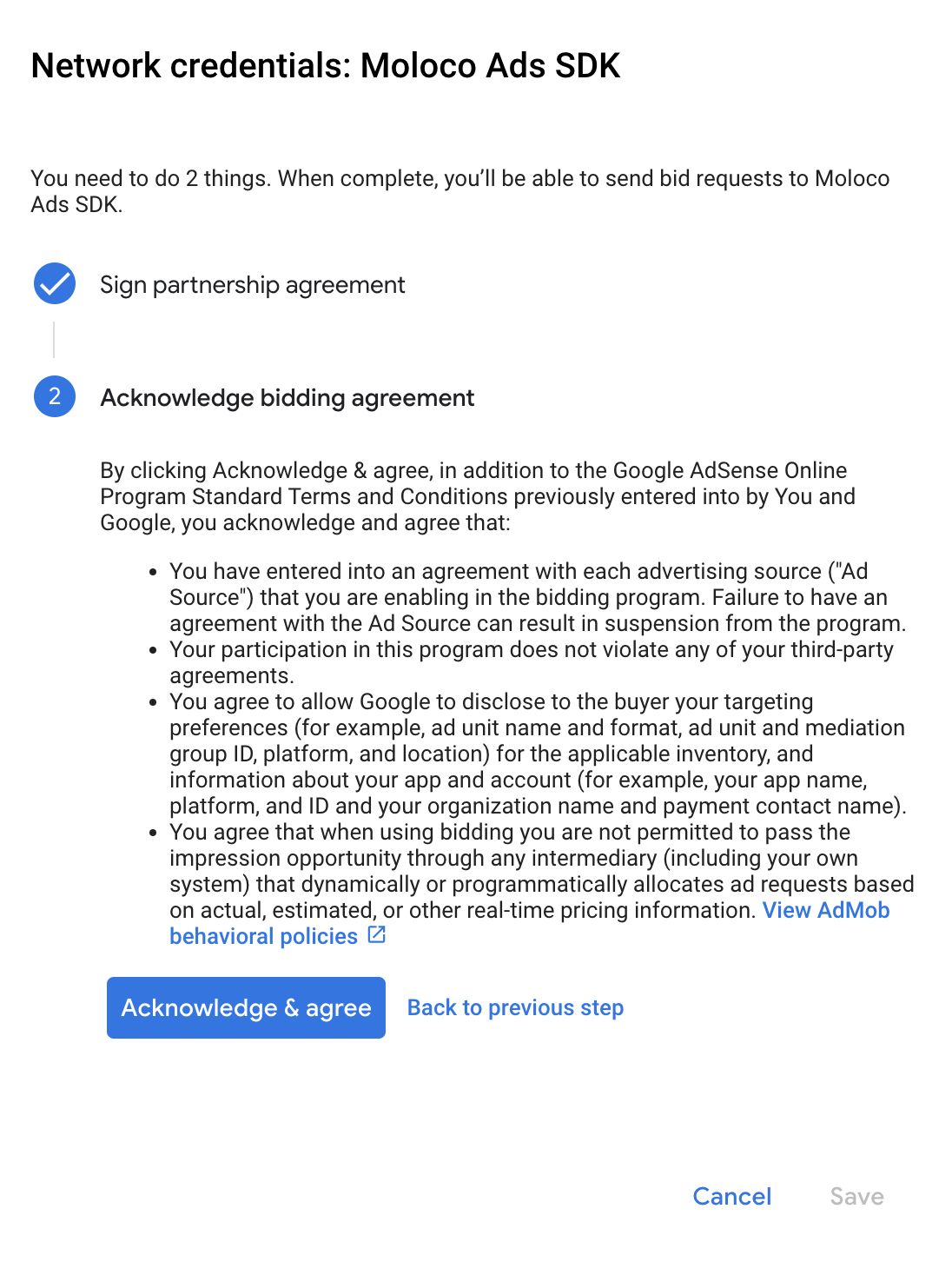 Kliknij Jak podpisać umowę partnerską i skonfiguruj partnerstwo w zakresie ustalania stawek z pakietem SDK do reklam Moloco.