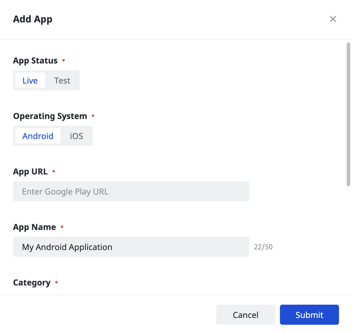 Выберите операционную систему , для которой вы хотите создать приложение, и заполните остальную часть формы. Затем нажмите «Отправить» .