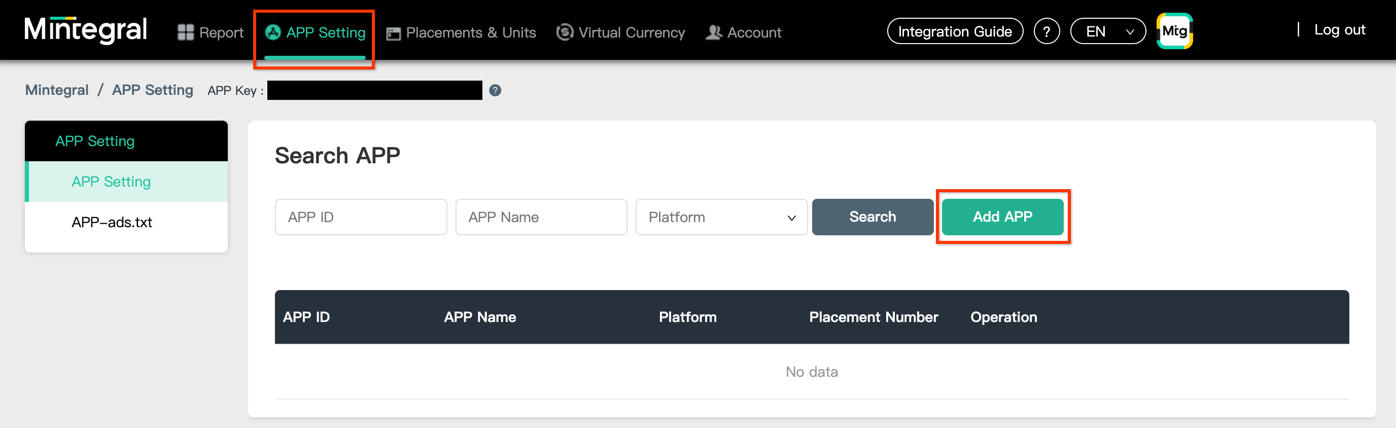 Bước 1: Thiết lập cấu hình trong giao diện người dùng Mintegral