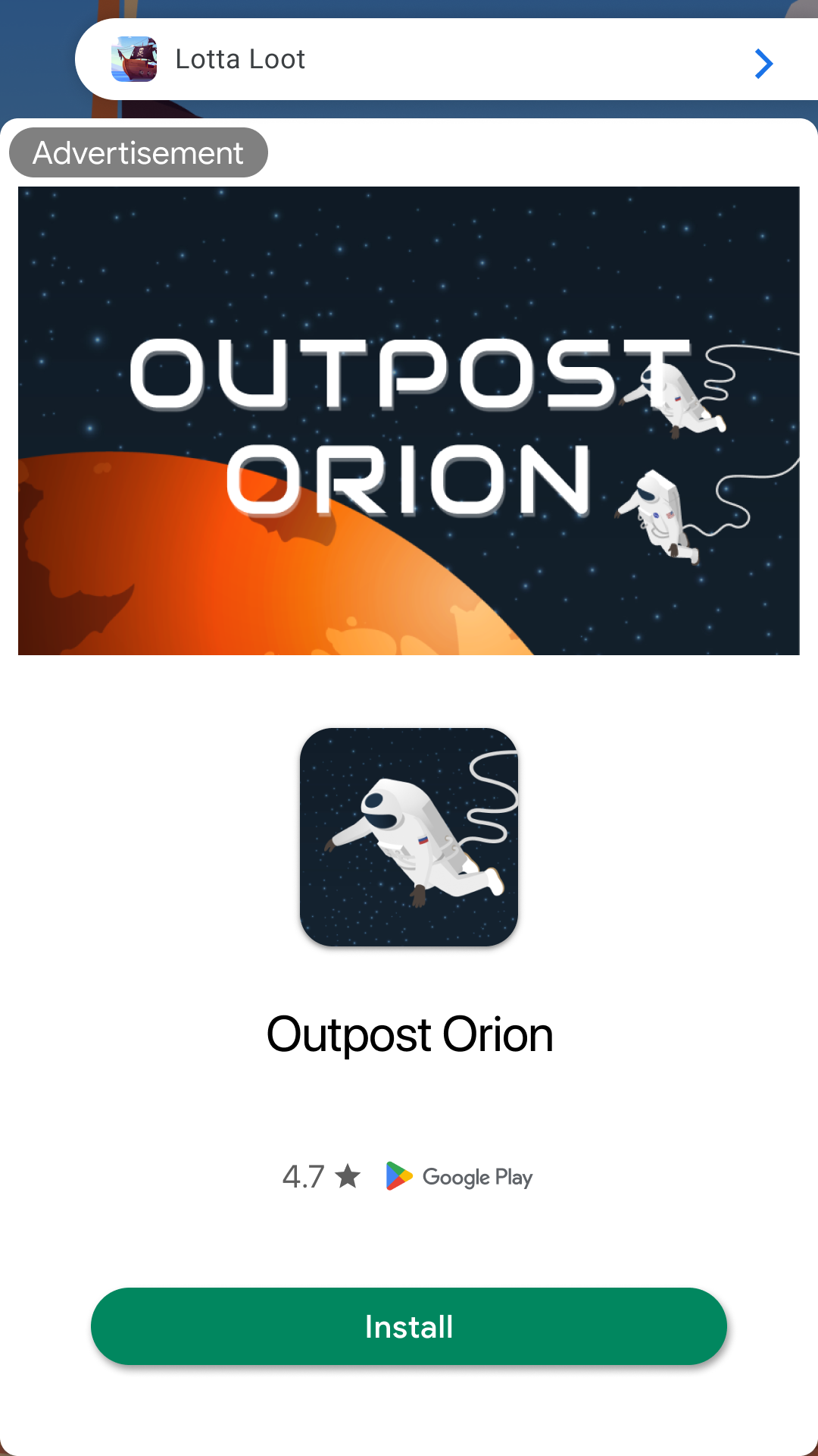 מודעות בפתיחת אפליקציה מציגות באופן אוטומטי אזור מיתוג קטן כדי שהמשתמשים ידעו שהם באפליקציה שלכם. הנה דוגמה למודעה בפתיחת אפליקציה: