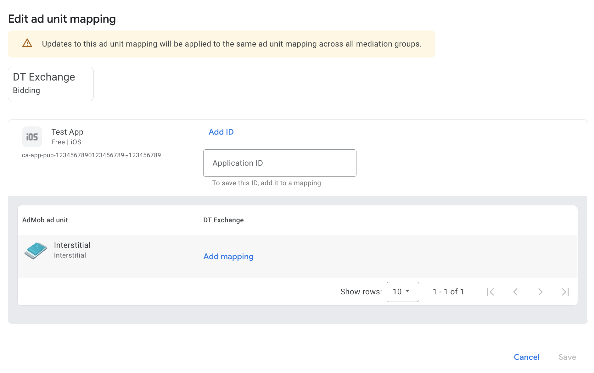 Musisz dodać DT Exchange do konfiguracji mediacji w przypadku jednostki reklamowej.