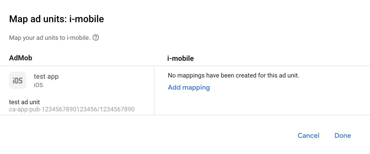Jika sudah memiliki pemetaan untuk i-mobile, Anda dapat memilihnya. Jika tidak, klik Tambahkan pemetaan.