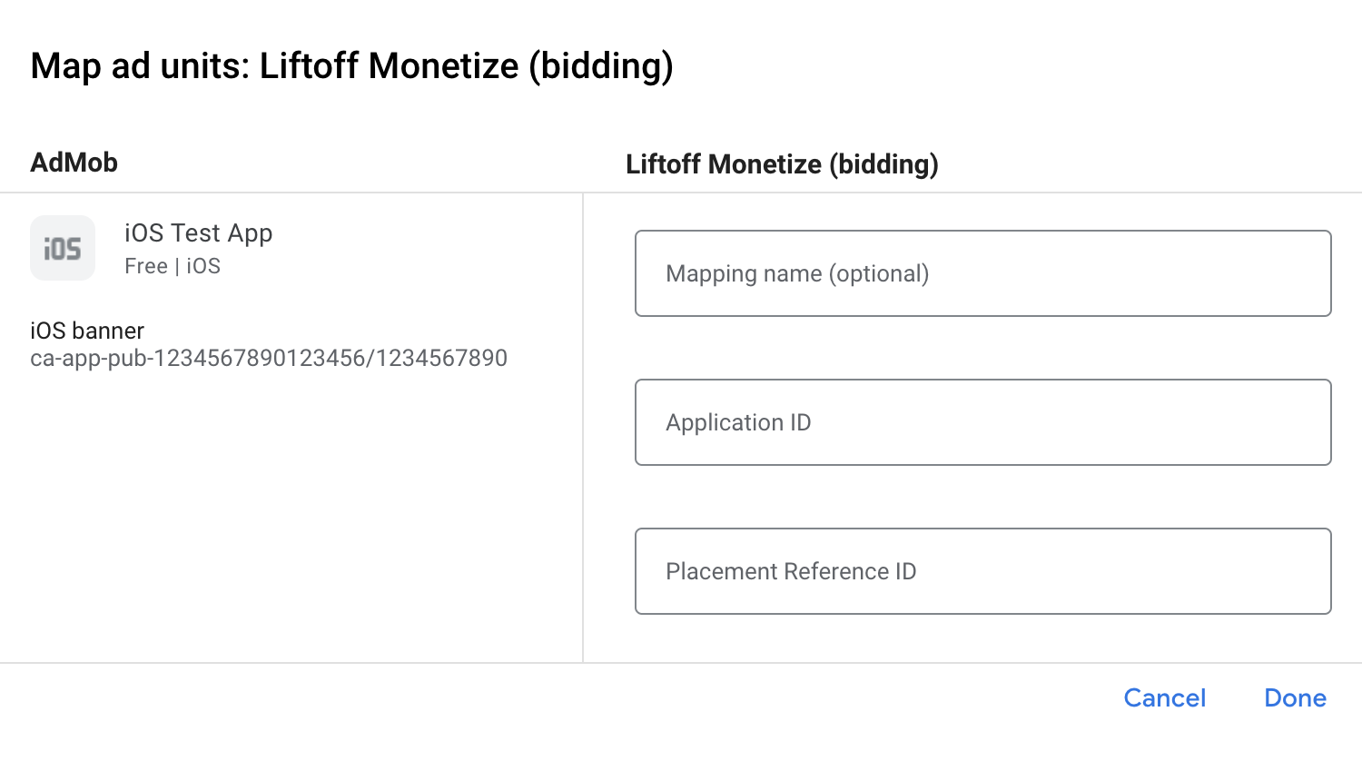Étape 2 : Configurer la demande Liftoff Monetize dans l'UI AdMob