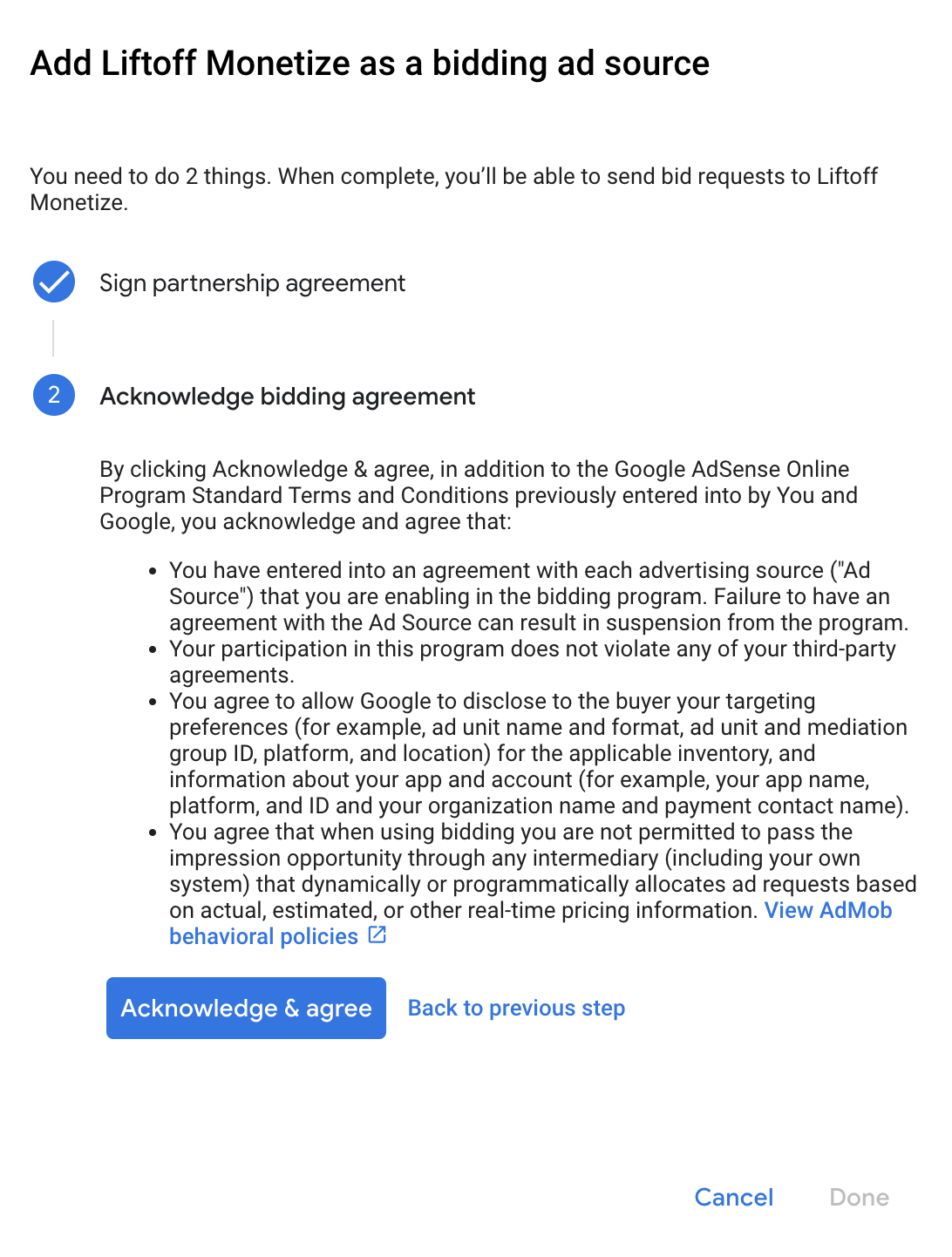 Fai clic su Come firmare un contratto di partnership e configura una partnership per l'asta con Liftoff Monetize.