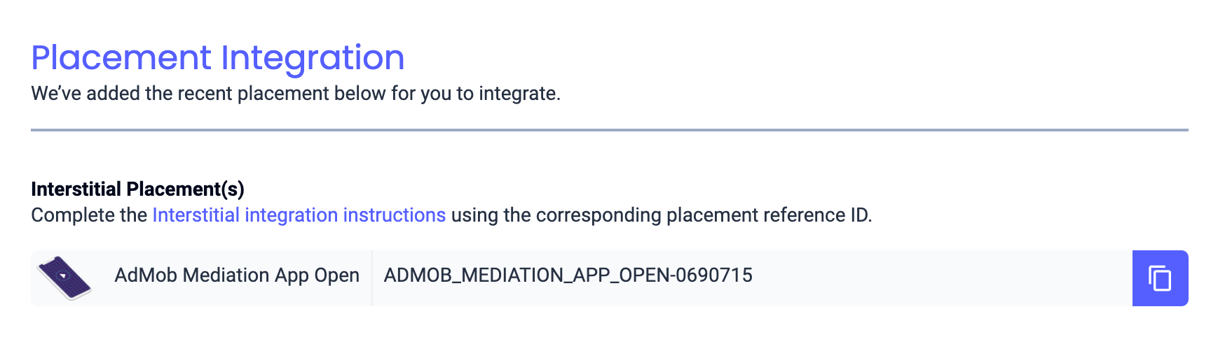 Em seguida, insira o ID do aplicativo e o ID de referência do posicionamento obtidos na seção anterior. Em seguida, clique em Concluído.