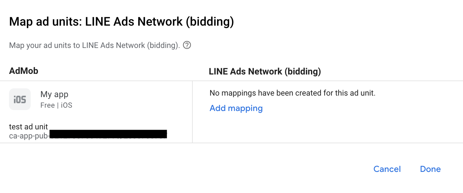 Se você já tiver um mapeamento para a LINE Ads Network, selecione-o. Caso contrário, clique em Adicionar mapeamento.