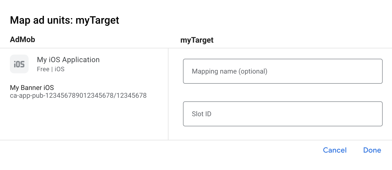 2. adım: AdMob kullanıcı arayüzünde myTarget talebini ayarlayın