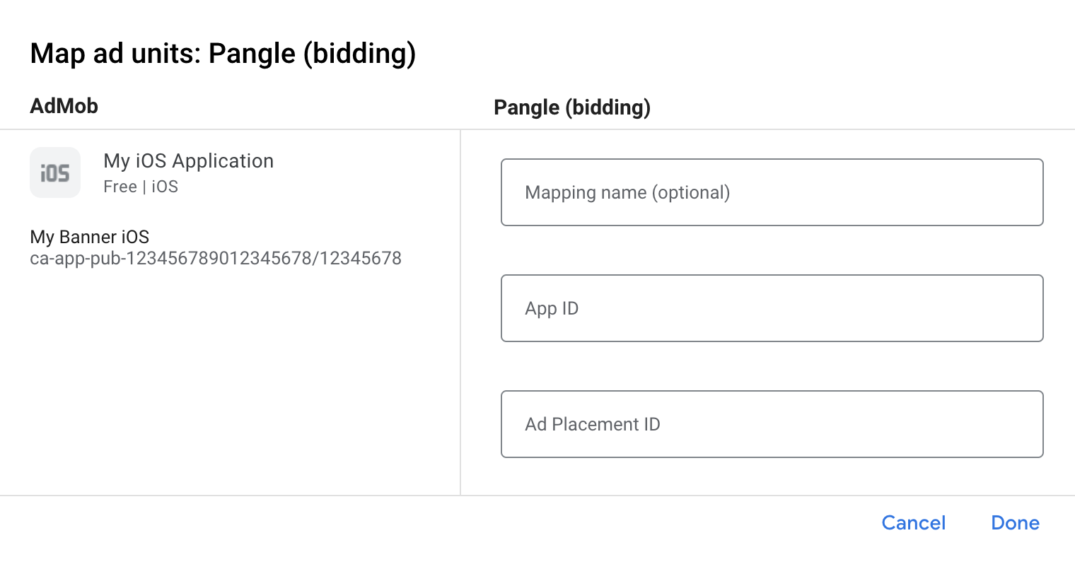 本指南說明如何使用 Google Mobile Ads SDK,透過 AdMob 中介服務載入及顯示 Pangle 廣告,內容涵蓋刊登序列和出價的整合功能。文中闡述如何將 Pangle 新增至廣告單元的中介服務設定,以及如何將 Pangle SDK 和轉接程式整合至 iOS 應用程式。