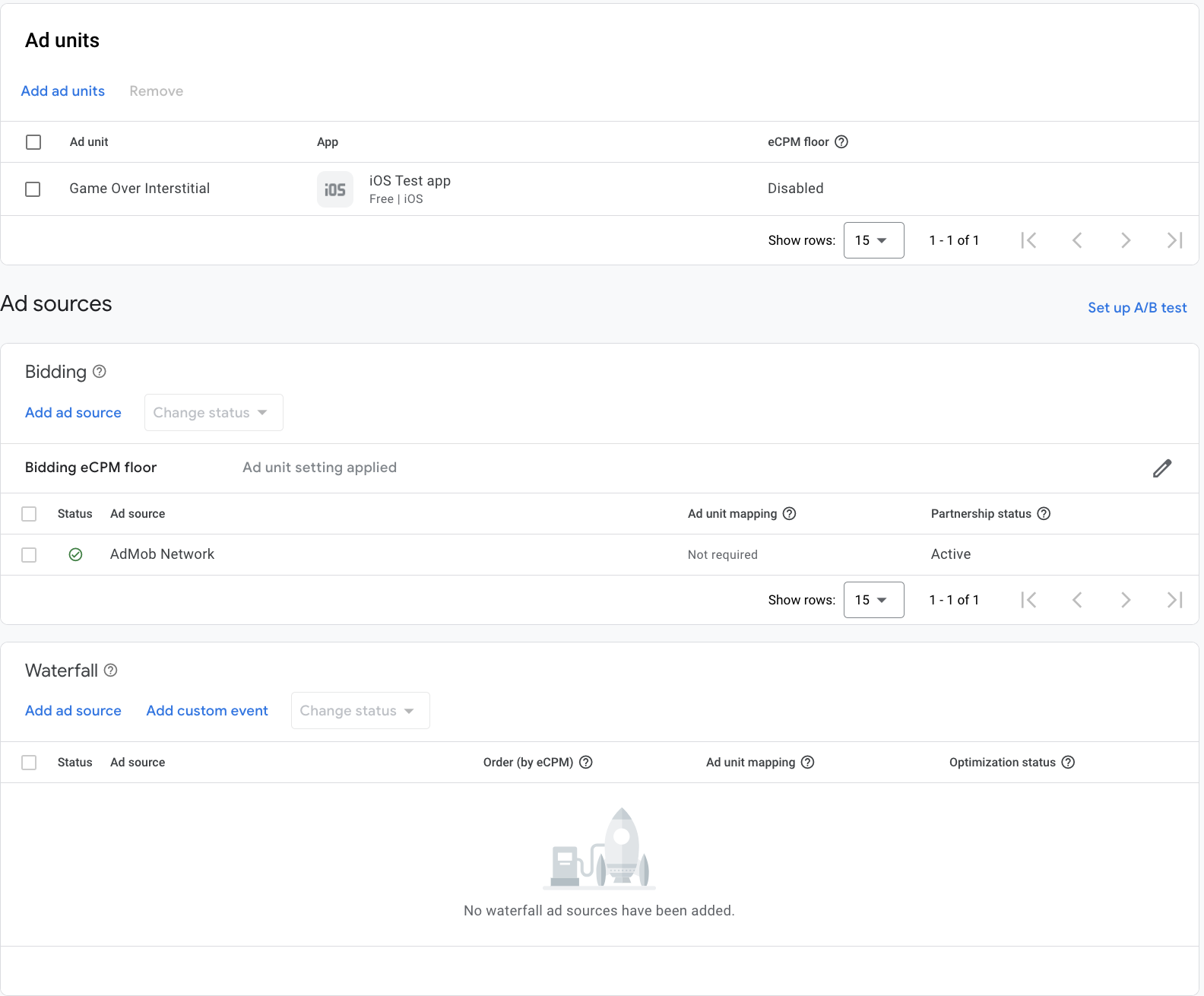 En la tarjeta Cascada de la sección Fuentes de anuncios, selecciona Agregar fuente de anuncios.