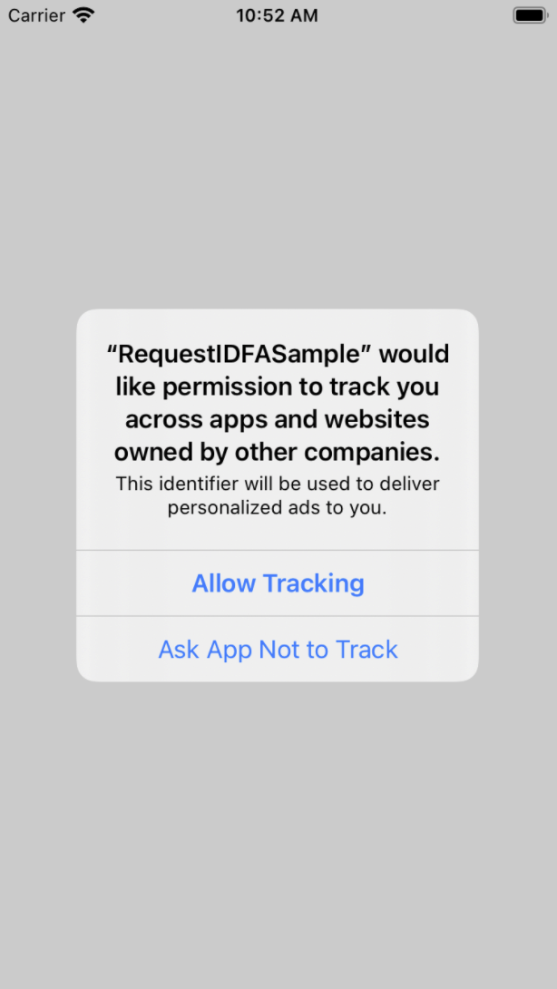 לאחר מכן, האפליקציה מציגה הודעת IDFA לפני התראת ה-ATT.