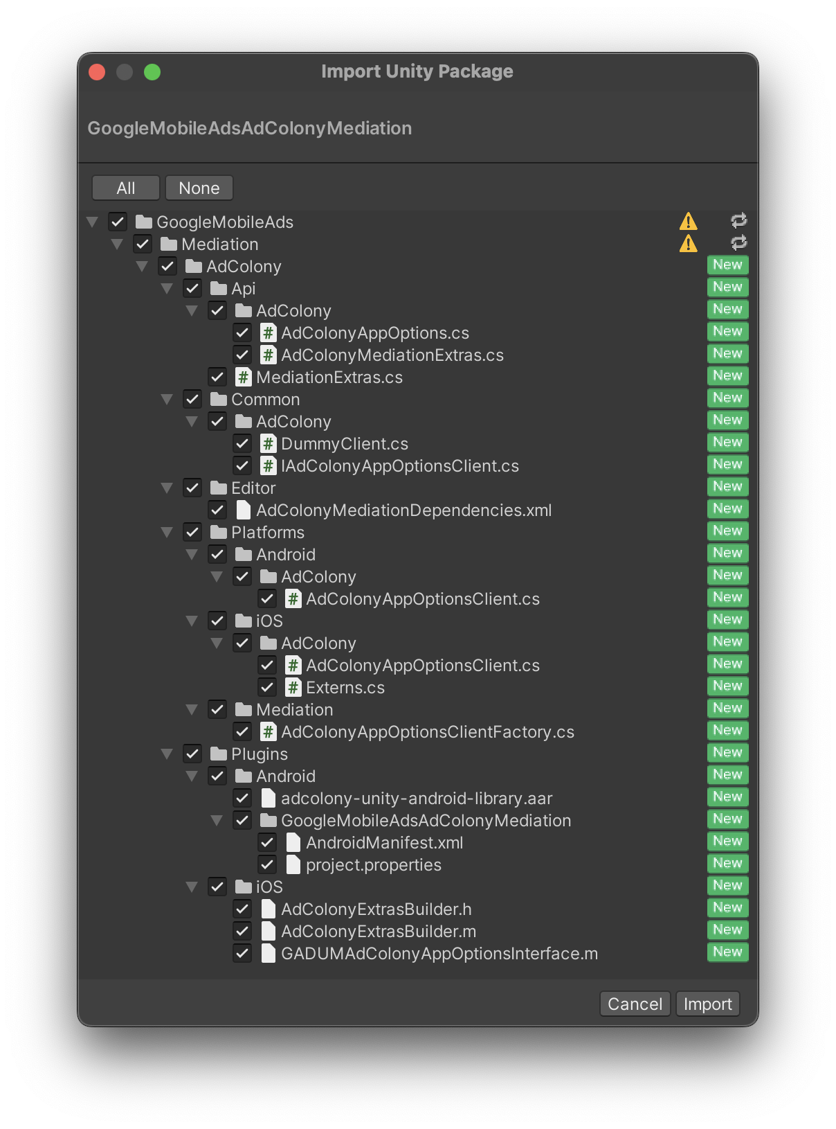 [null,null,["อัปเดตล่าสุด 2025-12-16 UTC"],[],["AdColony is deprecated and should be removed. Manually delete all AdColony Unity mediation plugin asset files located in your project's `Assets` folder. Additionally, remove AdColony from all mediation groups within the AdMob UI, using the instructions provided in the AdMob help center. The screenshot referenced shows examples of AdColony Unity mediation plugin files that should be removed.\n"]]