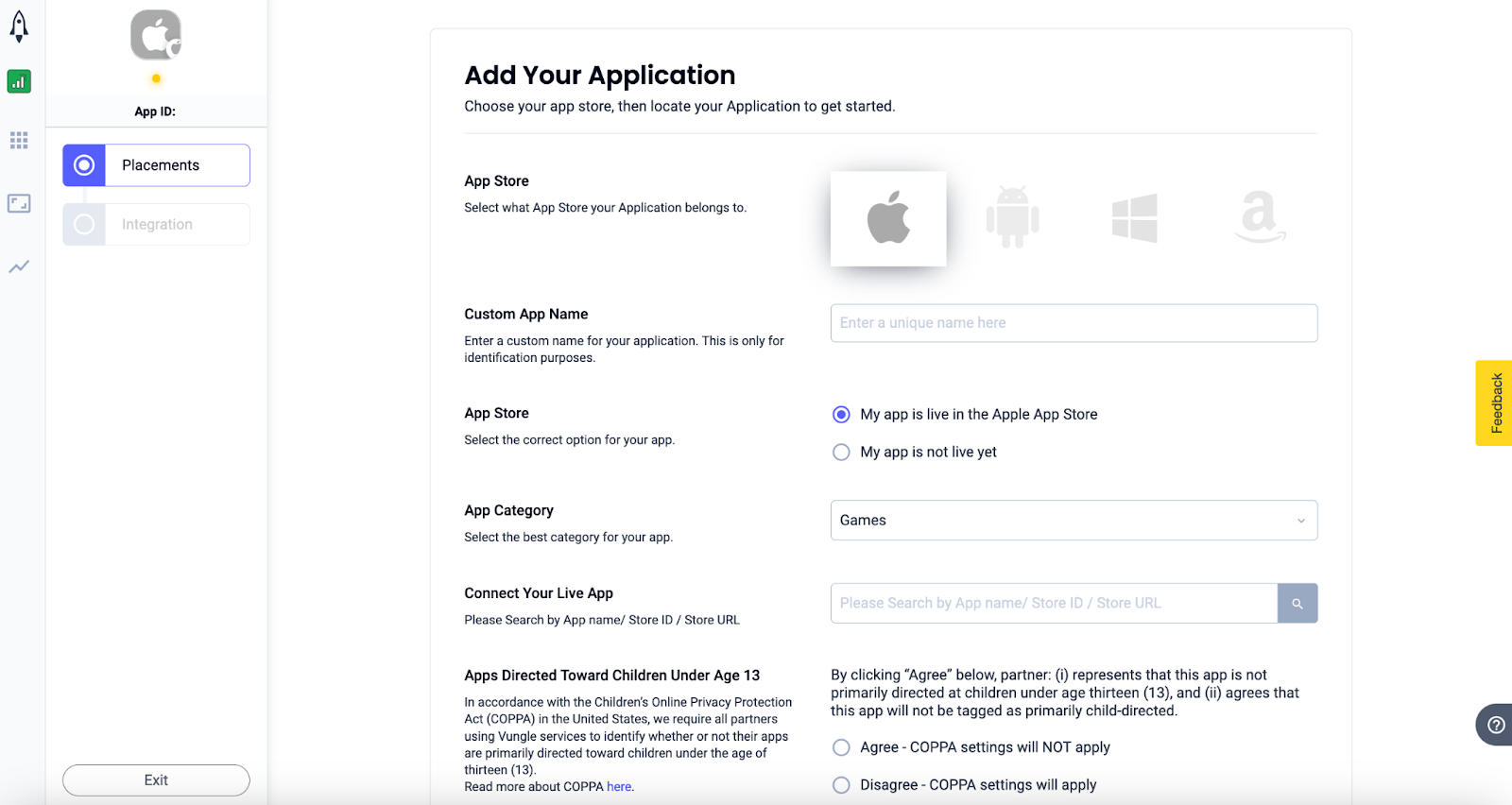 Add your app to the Liftoff Monetize dashboard by clicking the Add Application button.