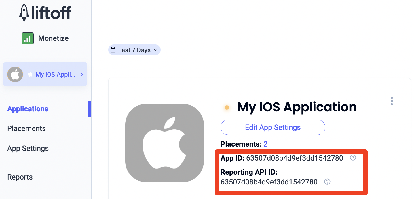 Setelah aplikasi Anda dibuat, pilih aplikasi Anda dari dasbor Aplikasi Monetisasi Liftoff.
