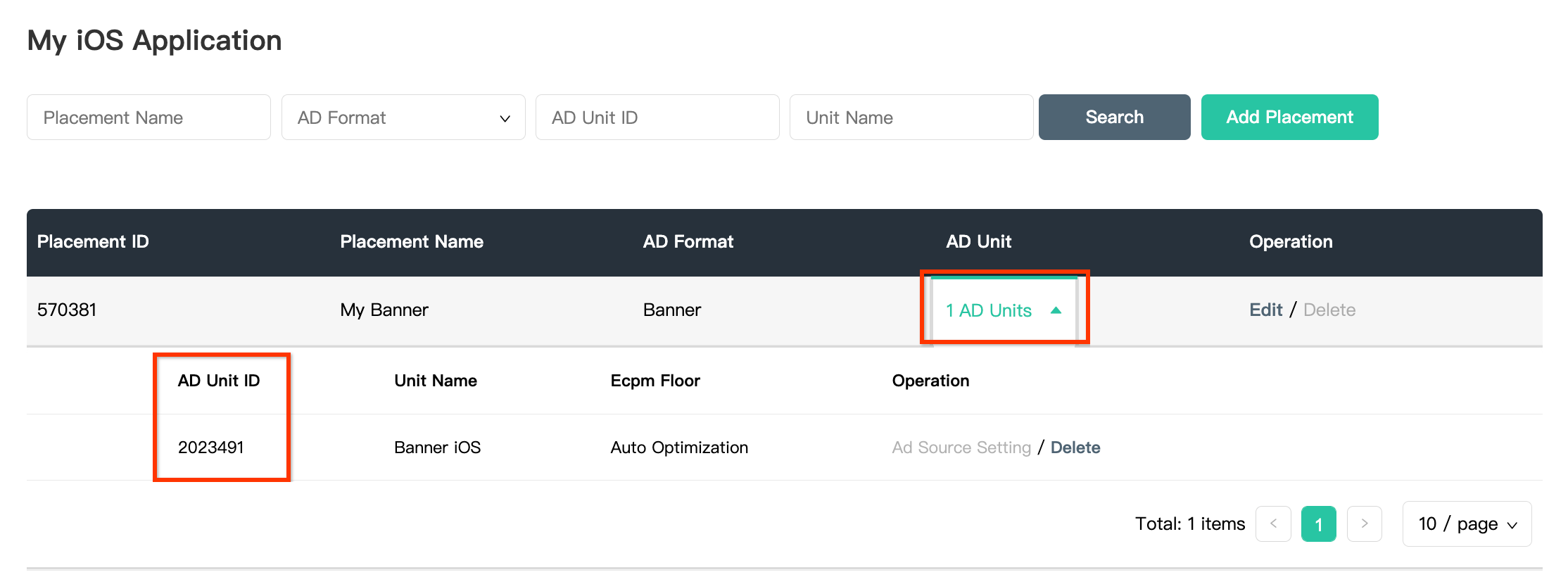 広告プレースメントを作成したら、プレースメント ID をメモしておきます。