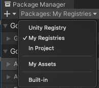 在资源包管理器窗口中,将 OpenUPM 添加为限定范围的注册表: