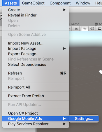 En el editor de Unity, selecciona Assets > Google Mobile Ads > Settings en el menú.