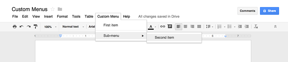 תפריטים בהתאמה אישית ב-Docs, ב-Sheets, ב-Slides או ב-Forms