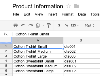 sheet.appendRow(['Cotton Sweatshirt XL', 'css004']);