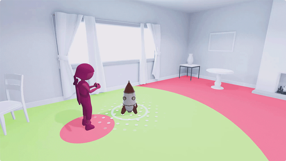 사용자에게 가장 가까운 다운 스테이지: 예상치 못하게 사용자 가까이에 개체를 배치하면 전체 개체를 보기가 어려워지므로 사용자가 뒤로 돌아올 수밖에 없습니다. 이는 사용자가 무언가를 자세히 살펴보거나 자세히 살펴보기를 원하는 경우에 유용합니다. 하지만 사용자가 뒤로 이동하도록 유도하지 않도록 주의하세요. 뒤에 있는 실제 물체에 부딪힐 수도 있습니다.