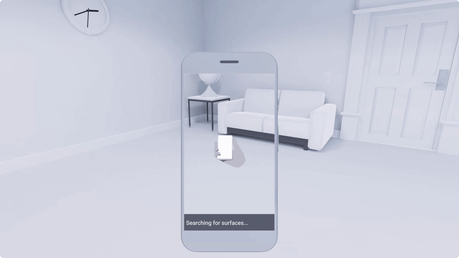 ARCore ตรวจจับพื้นผิวแนวตั้งได้ แต่ในบางกรณี อาจต้องใช้เวลาค้นหานานกว่านั้นเล็กน้อย