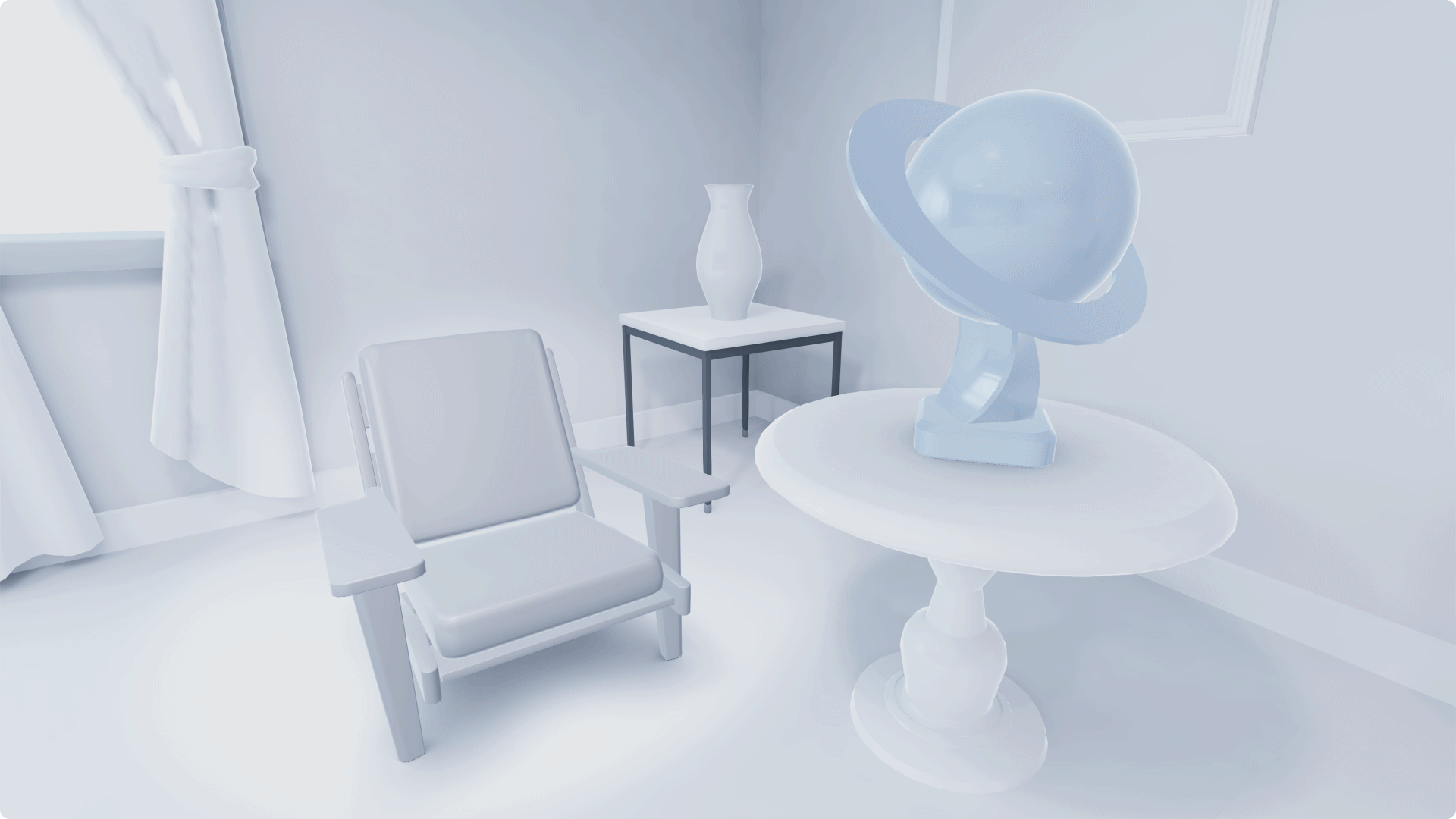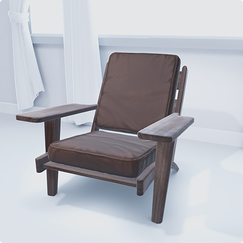 Denken Sie daran, dass 3D-Objekte von allen Seiten betrachtet werden können. Verwenden Sie vollständige Objekte und achten Sie darauf, alle Oberflächen zu rendern, auch solche, die Nutzende nicht sofort sehen, z. B. die Rückseite eines Vorhangs oder die Unterseite eines Sofas.