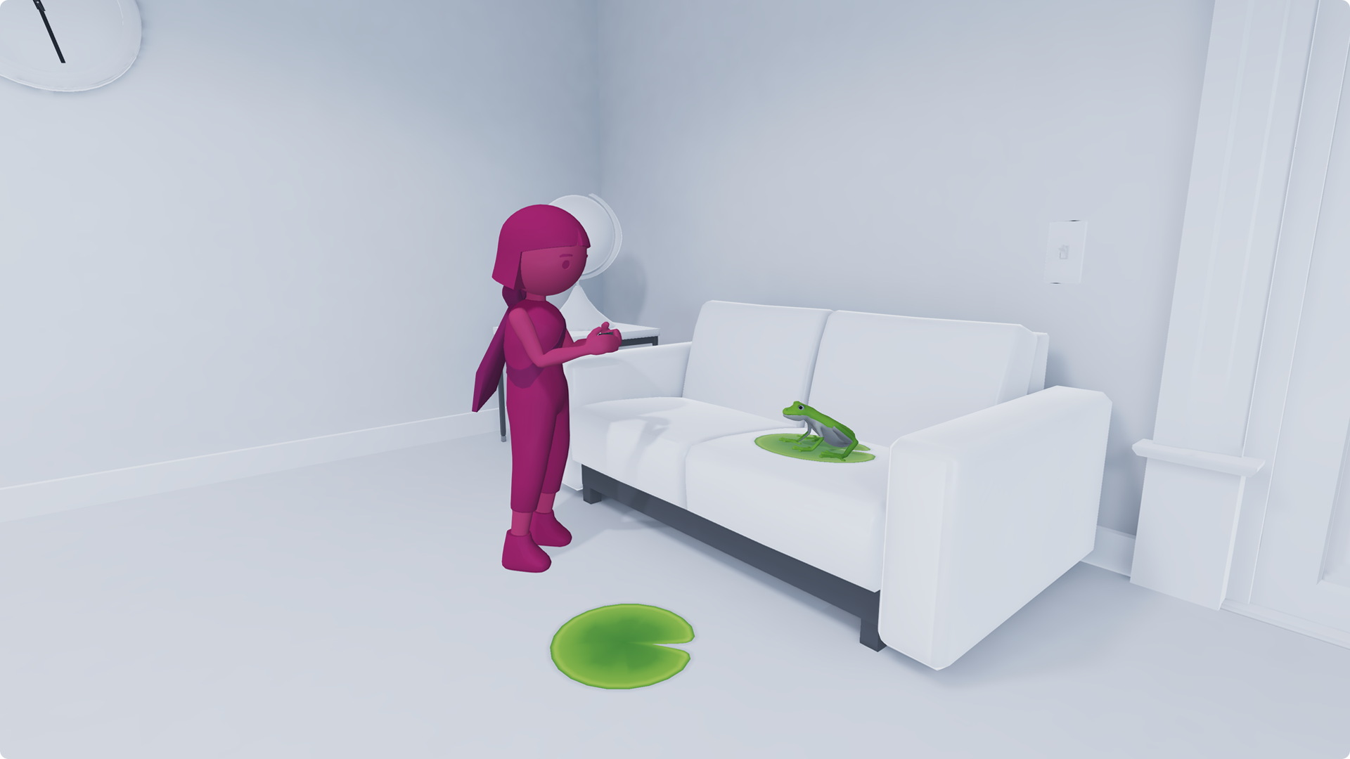 Создавайте объекты, которые перемещаются из одной части сцены в другую. Подумайте о лягушке, которая прыгает с пола на стол, или о поезде, который едет от заднего плана к переднему. Это сделает ваш опыт не похожим на витрину магазина, а больше на мир, и, как преимущество, сцена будет чувствовать себя обитаемой и живой.
